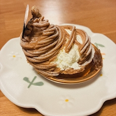 おはようございますദ്ദി^._.^) 昨日は母上のお誕生日だったので 仕事終わりにケーキ買って帰ったよん🎂 チャリで一生懸命家に帰ったからなのか 母上のモンブランが 芸術的なデザインになってた😭😭笑 わたしのタルトは無事でした🩵笑 いつまでも元気でいてねーん❣️